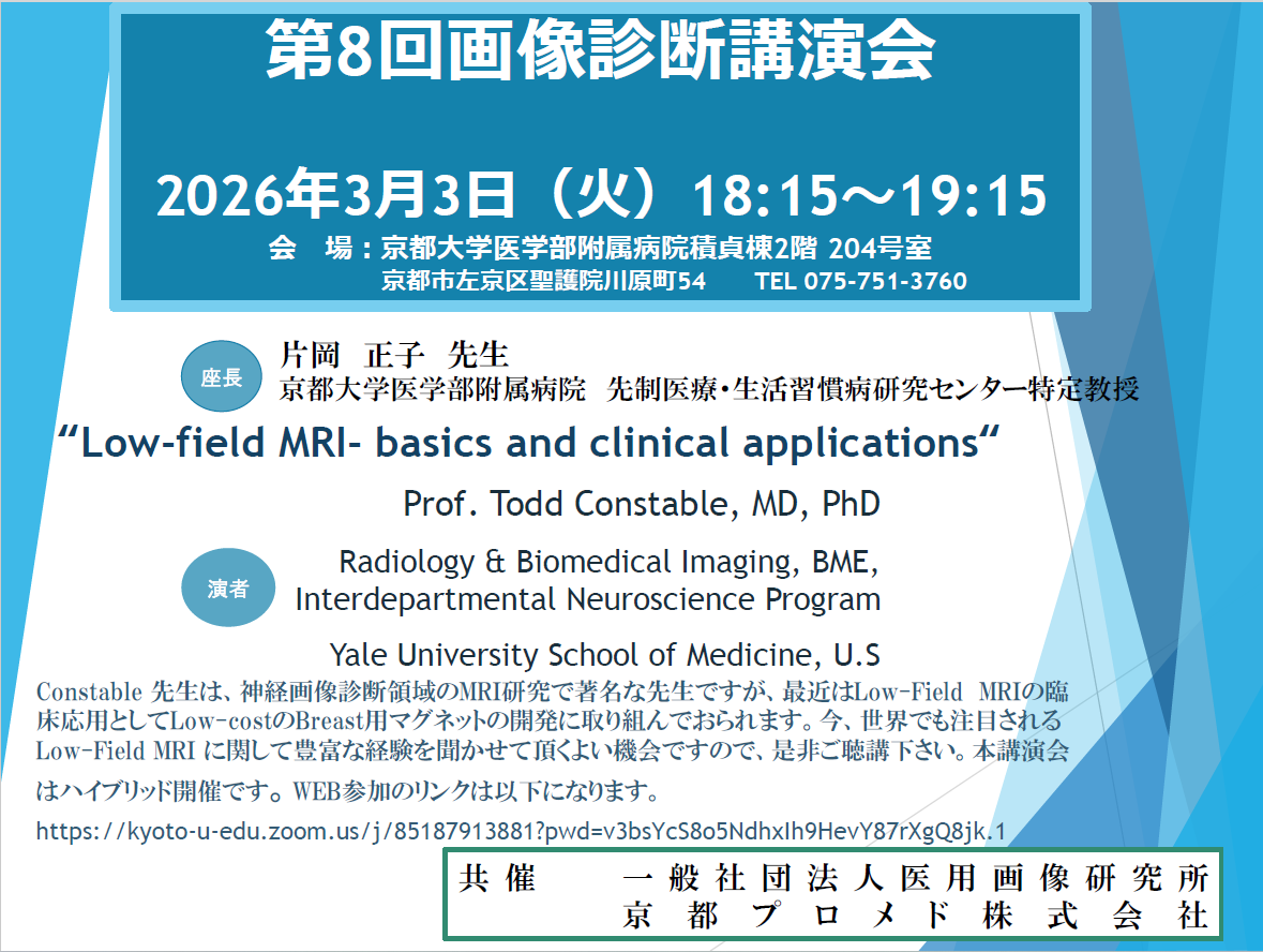 Constable 先生は、神経画像診断領域のMRI研究で著名な先生ですが、最近はLow-FieldMRIの臨床応用としてLow-costのBreast用マグネットの開発に取り組んでおられます。今、世界でも注目されるLow-Field MRI に関して豊富な経験を聞かせて頂くよい機会ですので、是非ご聴講下さい。本講演会はハイブリッド開催です。WEB参加のリンクは以下になります。
